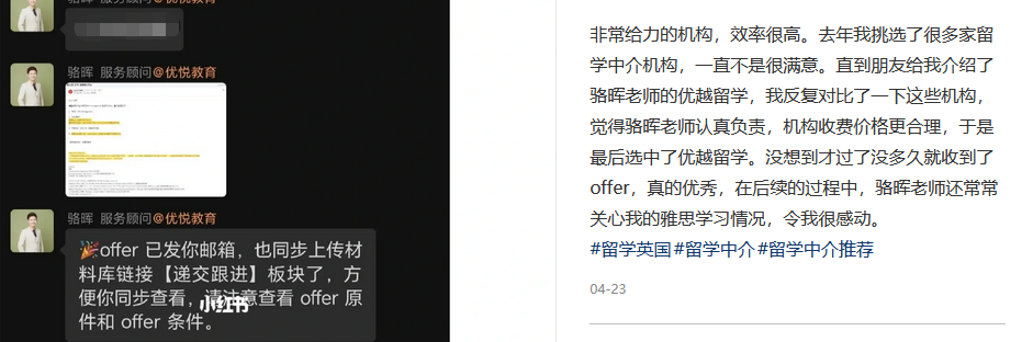 例如,優越留學是一家以英國為主要服務對象的區域知名留學中介機構,擁有十多年的從業經驗和數百個成功學生案例,相較于其他非本地留學機構,他們在處理學生申請時更加得心應手,同時也享有英國國內的教學資源和方式,這是他們的一大優勢。