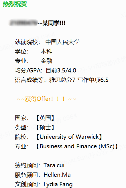 優越留學有本科成功留學華威大學的案例,感興趣的可以點擊進行閱讀:考研二戰失利轉向英國留學,一個月極限申請拿下華威商學院重磅offer!
