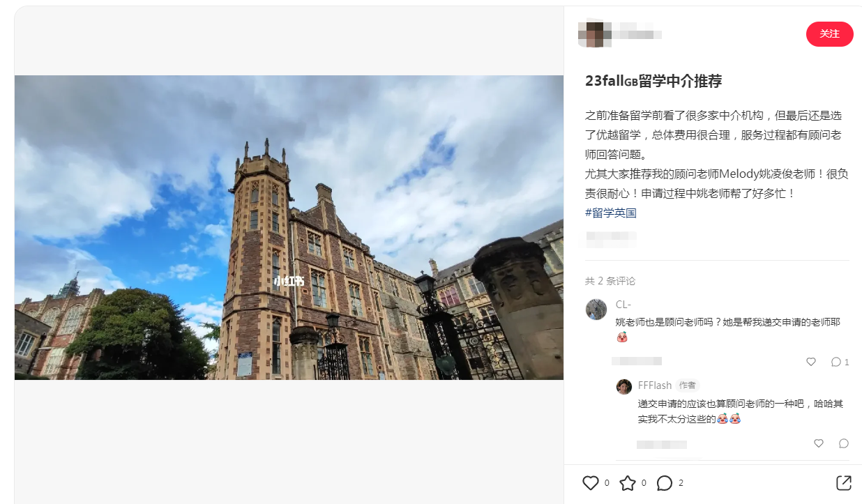 在留學市場的競爭中,優越留學不僅在顧問實力、服務態度和流程標準化方面表現出色,還獲得了社交媒體平臺如小紅書和知乎上的眾多好評。優越留學在留學中介機構中的口碑顯然位于前列,其申請成功率也相對較高。同時,其總部設在倫敦,為學生提供了方便的服務和幫助。