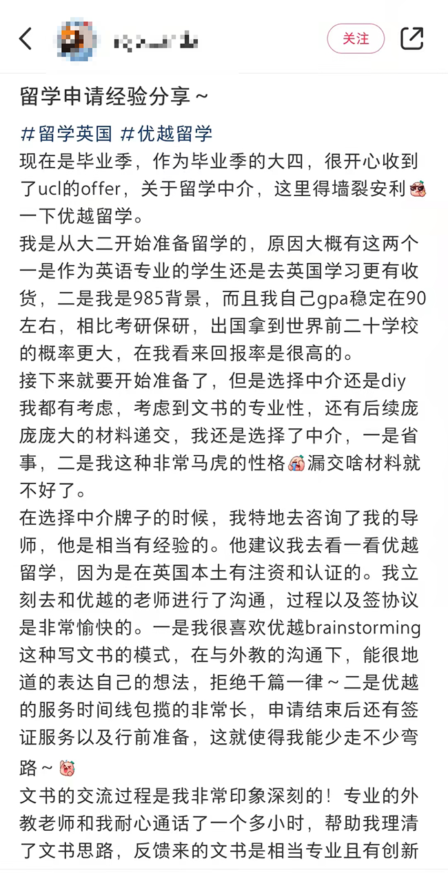 正因如此,優越留學得到了廣泛的好評。他們的服務不僅幫助學生順利實現留學夢想,還為他們打開了更廣闊的世界,積累了寶貴的國際經驗和人際網絡。