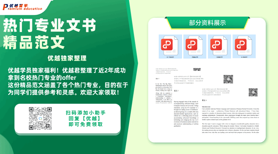 ?掃碼下圖即可免費領取《熱門專業文書精品范文》,或者直接點擊【在線咨詢】>>預約專業顧問為你答疑解惑!