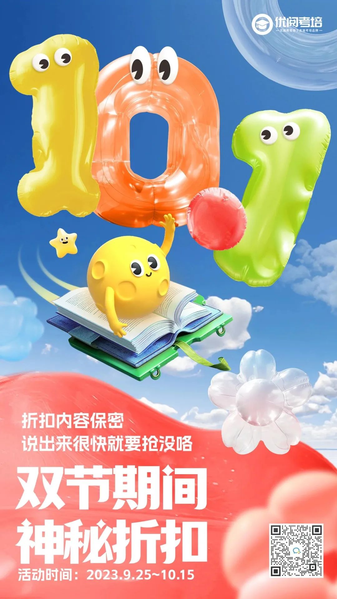 另外還有個特大好消息,中秋國慶雙節期間,優閱考培為大家準備了神秘折扣