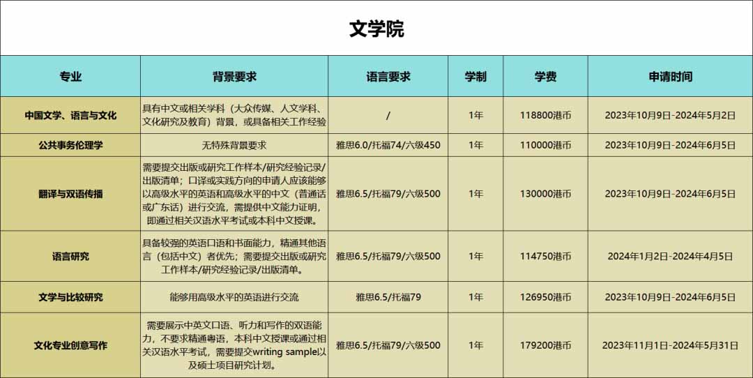 中國文學、語言與文化等專業在香港浸會大學文學院非常熱門,特別是由于不需要提供語言成績,吸引了許多考公務員熱門的學生。不過,申請這些專業的學生最好具備相關的背景,例如漢語言文學或漢語國際教育等本科背景,這將增加您的申請競爭力。即使您擁有強大的背景,如果沒有相關領域的學術基礎,也有可能面臨被拒絕的風險。