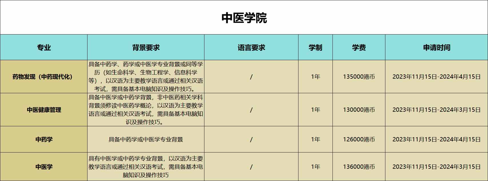 中醫學院的專業開放時間較晚,需等待至11月15日。這一學院的特點是,雖然不要求提供語言成績,但申請者需要具備相關的背景才能順利申請。