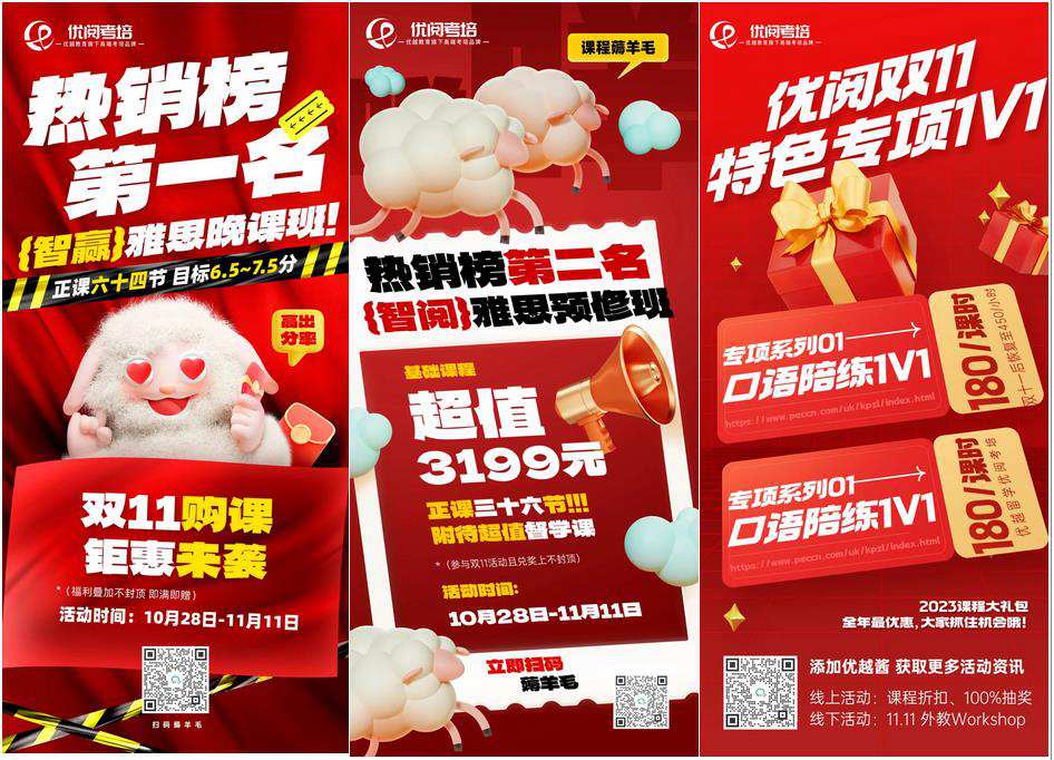 而在所有的留學類考試中,熱銷榜前三分別是雅思智贏線上晚班課、雅思智閱預修班、特色專項1V1(口語 & 寫作),并且它們統統參與雙十一課程活動!