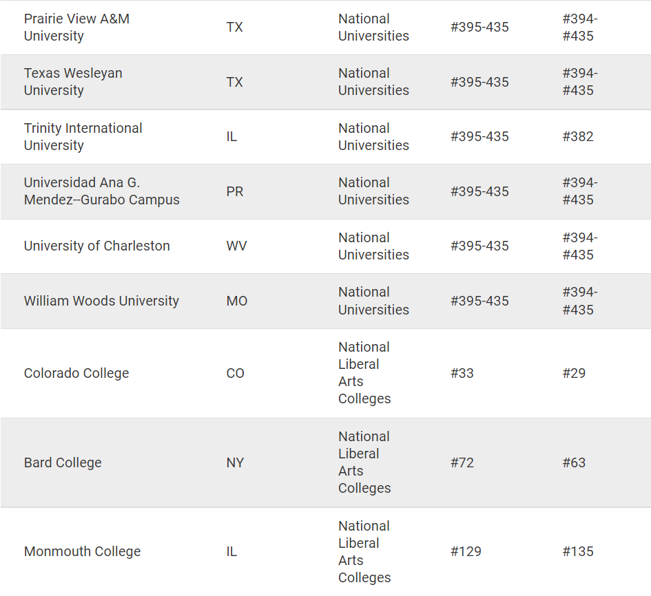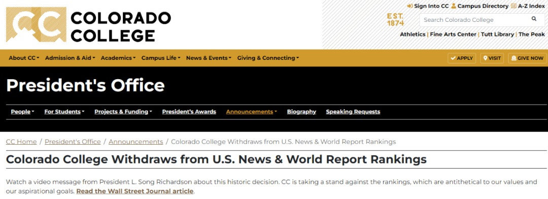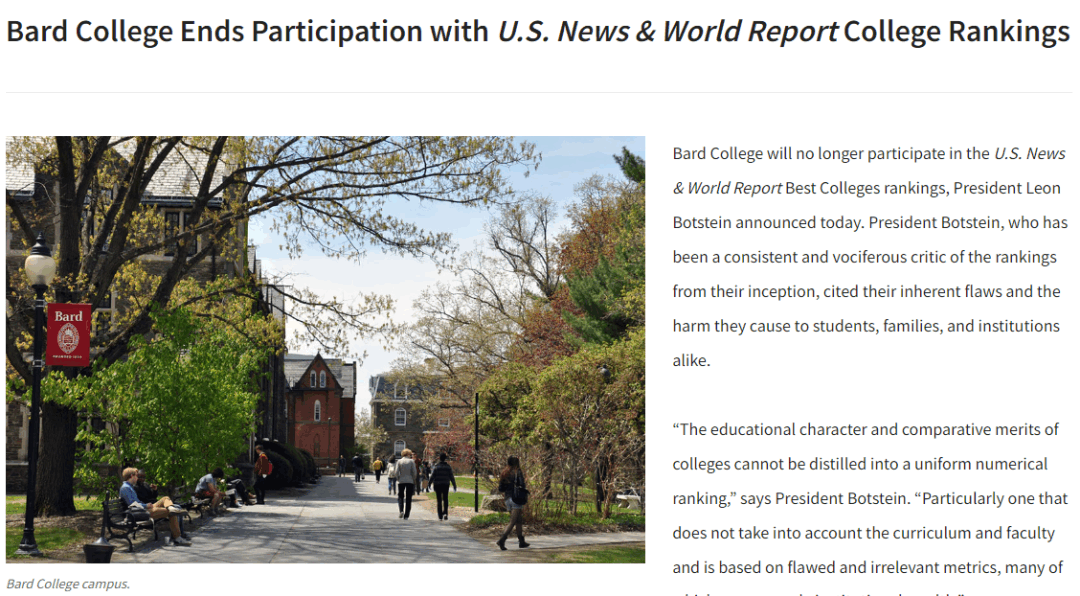不過大家也別太害怕,因為早在2023年上半年,科羅拉多學院和巴德學院就先后官宣,一個退出U.S.News本科生排名,一個推出U.S.News文理學院排名。