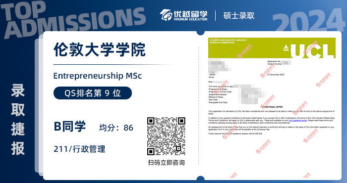 最終同學也順利拿到了UCL學校的OFFER,在申請過程中的Battle和努力沒有一個是白費的,恭喜B同學!