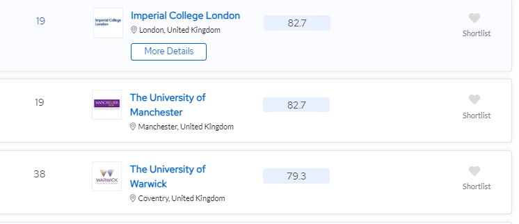 華威大學AF專業還在英國《衛報》當中位列全英第二。根據QS學科排名的評分劃分,華威和曼大的AF是和G5之一的帝國理工同屬一個梯隊的,其申請難度不可小覷。
