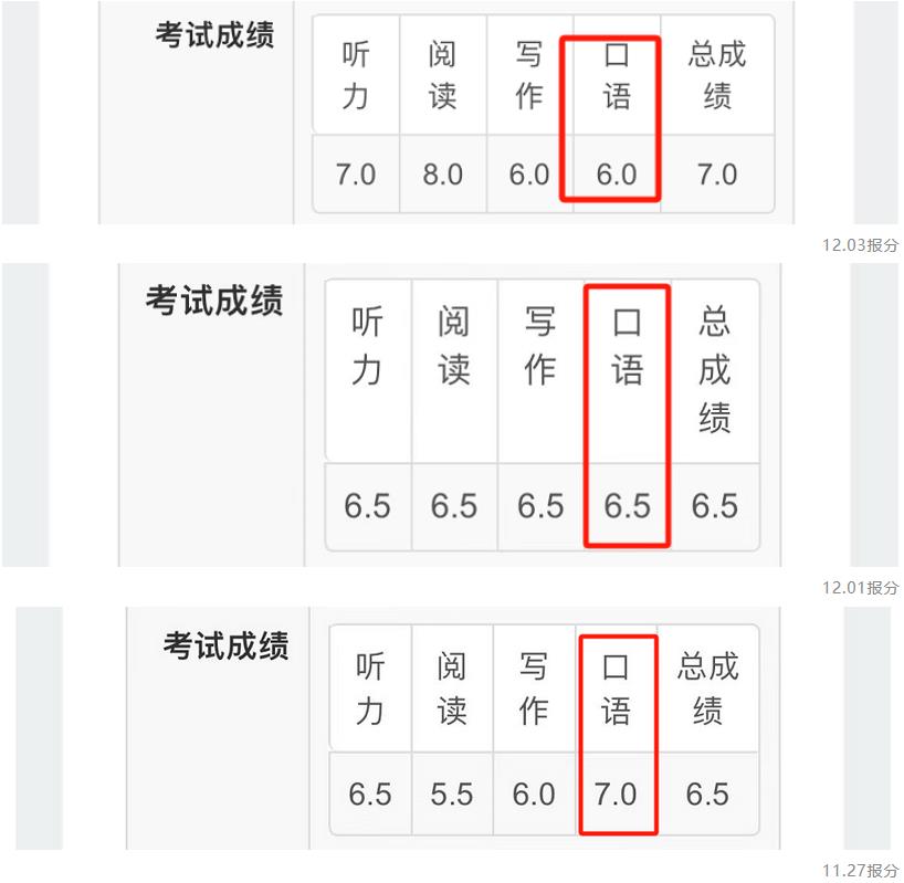 購買優閱考培口語陪練課的考生,大多口語分都能上6.0,以下節選部分購買口語陪練項目的學生成績單(近期)