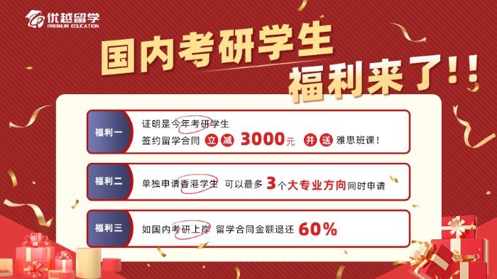 即日起凡是在優越留學簽約辦理預科留學(本科預科或碩士預科),原價12000元的留學產品限時特惠8000元,額外贈送價值4000元的雅思預修班!