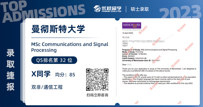 錄取專業:MSc Communications and Signal Processing