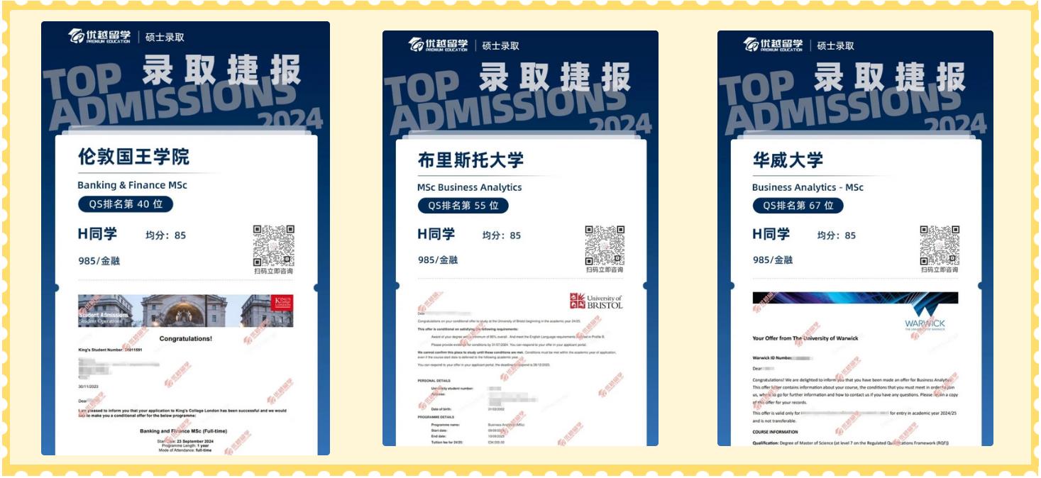 錄取院校:倫敦國王學院KCL,華威大學,布里斯托大學