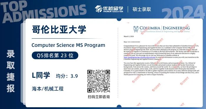 3月初,好消息傳來,哥大向L學長遞出了橄欖枝。目前,L學長仍有多個院校的遞交材料仍在審理中,這里也預祝L學長24Fall能圓滿收官,所愿皆所得!