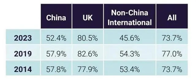當然,英國院校和中國學生,某種意義上也算是雙向奔赴。據官方數據統計,中國學生的錄取率一直是高于其他國際申請者的。由于申請人數較多,部分大熱院校專業也只能對中國寶寶們說一聲抱歉。