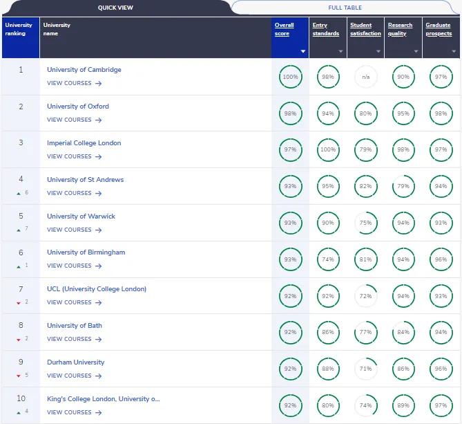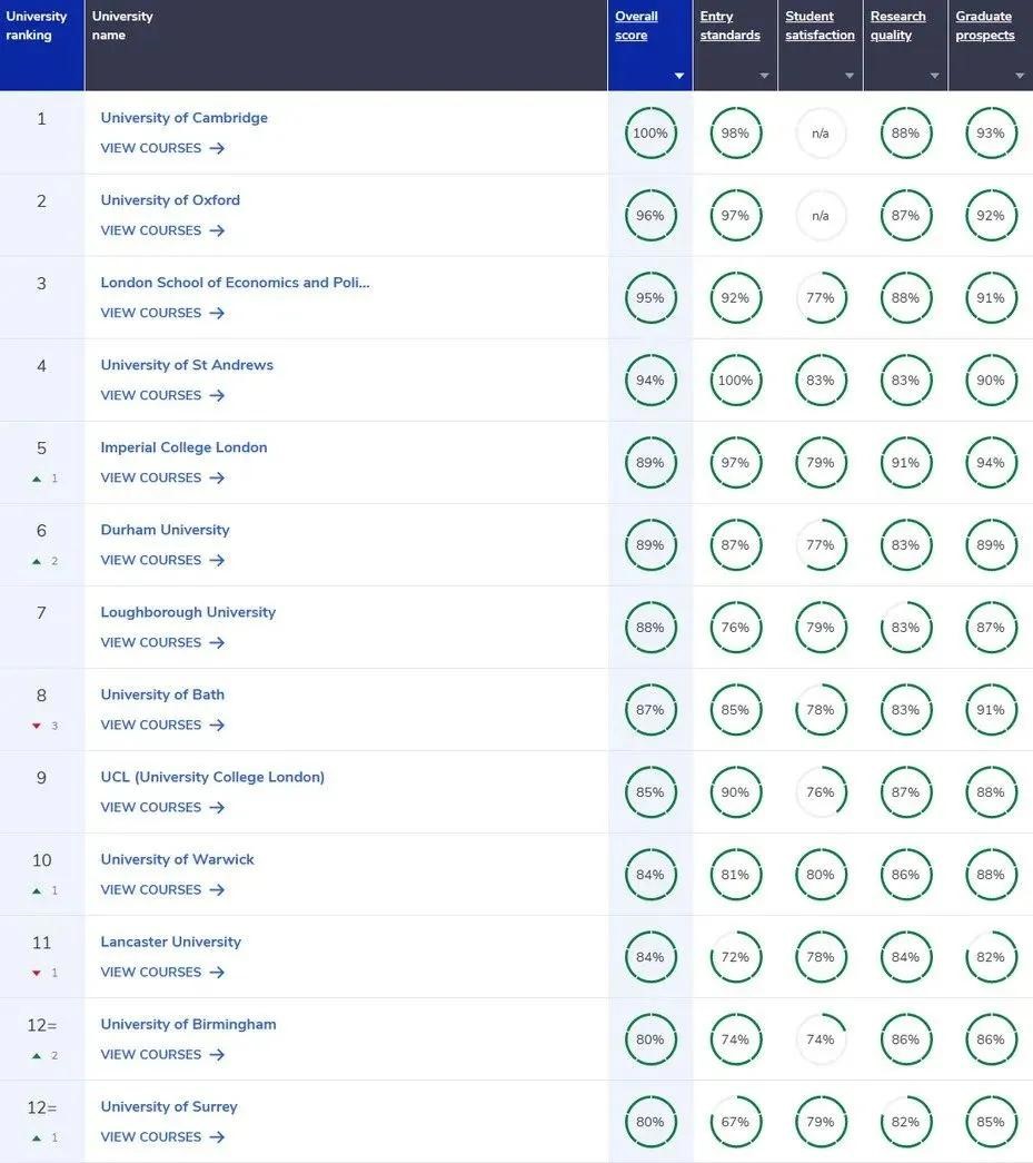 CUG(Complete University Guide)是受英國當地人期待的「英國本土最受信賴的高校排名指南」之一。如果你正打算去英國念本科且有繼續碩博深造的打算,或是畢業后想要留在英國當地工作生活,那CUG排名絕對比QS排名的參考價值要高。