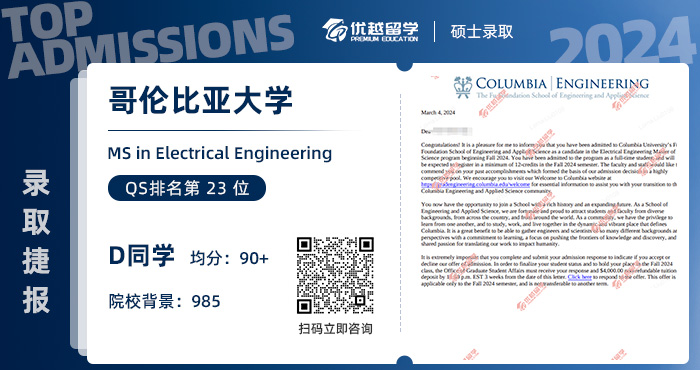 錄取院校:哥倫比亞大學——電子電氣工程碩士