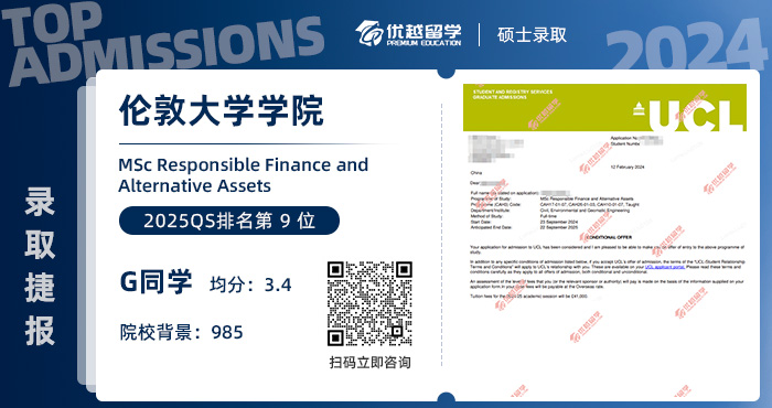以上是【本期案例分享:【G5名?!考兝砜妻D商科有多難?化工專業搖身一變UCL金融生!】相關的全部內容,查看更多【名校案例】相關資訊可前往【優越留學】首頁!詳細申請規劃及方案定制請預約優越留學顧問為你一對一解答!