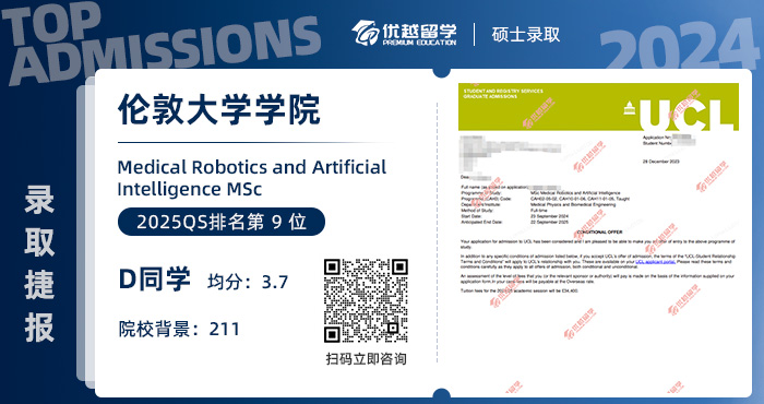 以上是【本期案例分享:【G5名?!看蠖巹澯魧W,如愿拿下UCL機器人AI風口專業】相關的全部內容,查看更多【名校案例】相關資訊可前往【優越留學】首頁!詳細申請規劃及方案定制請預約優越留學顧問為你一對一解答!