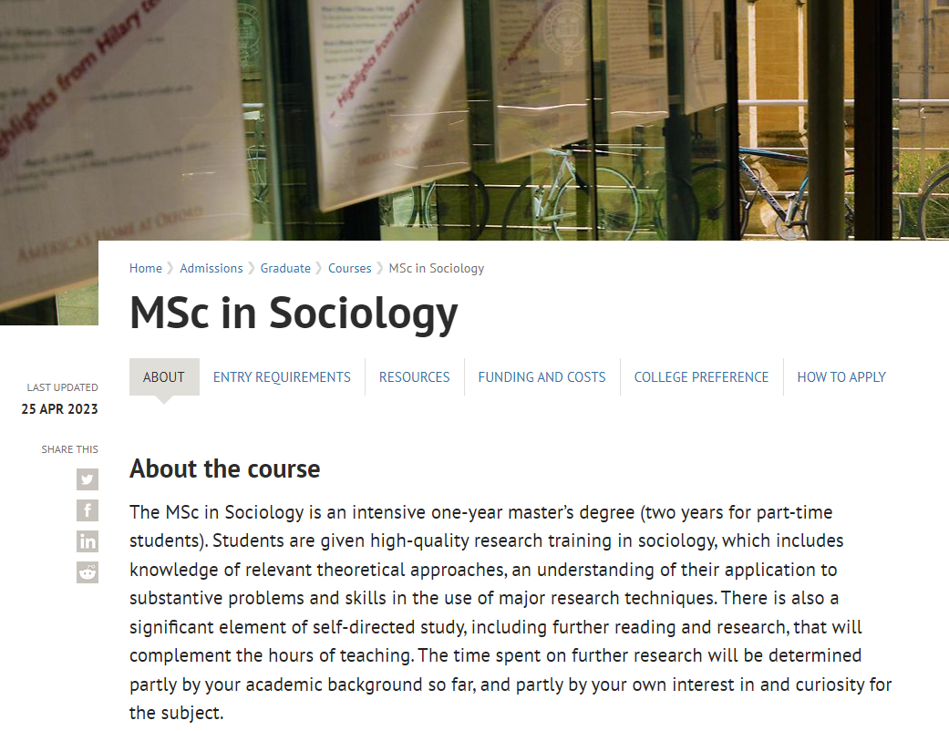 社會學是一個龐大的學科,包含多個分支領域和研究方向。因此,在申請前我需要甄選感興趣、與本科專業相關的碩士項目。我需要對不同的專業方向進行深入探究,了解不同的課程設置和教學方法,并結合個人興趣和研究方向來選擇最適合自己的專業。這一部分基本是顧問老師在幫我梳理并評估各專業的成功率。