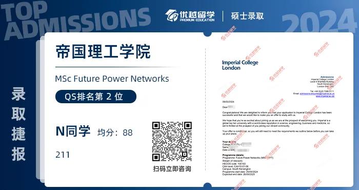 以上是【本期案例:211電氣工程學子,成功上岸IC帝國理工未來電網碩士! 】相關的全部內容,查看更多【offer榜單】、【名校案例】相關資訊可前往【優越留學】首頁!世界名校申請,找優越留學!選校定校、申請規劃、文書寫作、背景提升、方案定制一套搞定!點擊【在線咨詢】,優越留學顧問24h在線為您一對一解答!