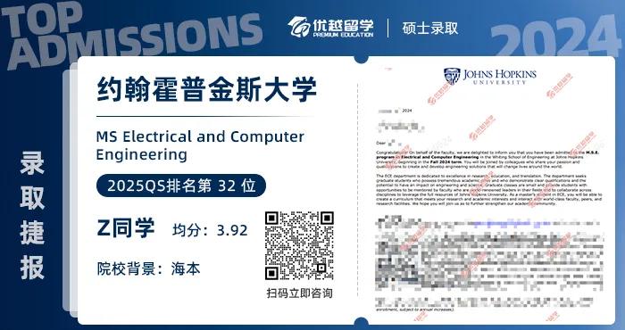 以上是【【美國名?!侩娮庸こ虒W姐超高GPA,拿下約翰霍普金斯大學JHU碩士offer!】相關的全部內容,查看更多【名校案例】相關資訊可前往【優越留學】首頁!詳細申請規劃及方案定制請預約優越留學顧問為你一對一解答!