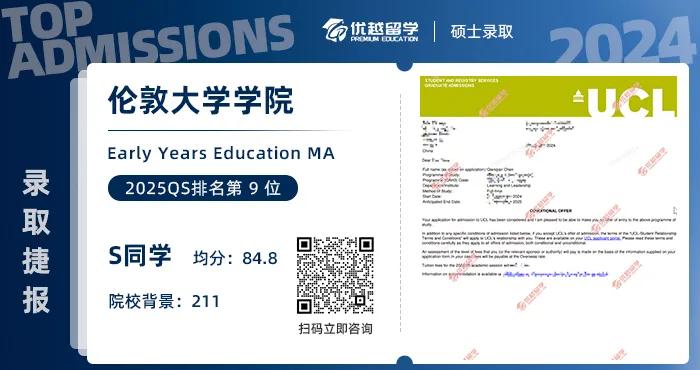 有了父母的支持后,S學姐只關注申請英國,特別是在UCL有豐富案例的機構,在同學的安利下,S學姐接觸到了優越留學的Celina老師,沒有多猶豫,在看到Celina老師給到的方案和過往戰績后,S學姐和S父母果斷簽約,選擇優越留學!