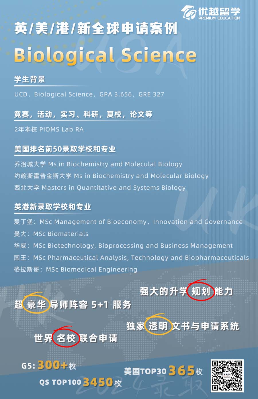以上是【【多國聯申】生物醫學多搶手?攬獲美國JHU、西北大學、英國王愛曼華offer! 】相關的全部內容,查看更多【名校案例】相關資訊可前往【優越留學】首頁!詳細申請規劃及方案定制請預約優越留學顧問為你一對一解答!