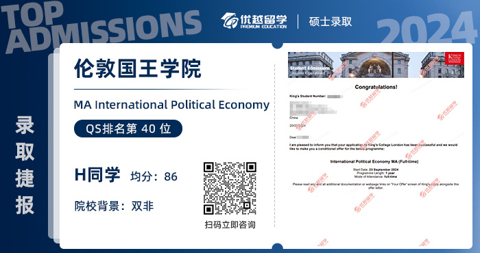 最終,我的努力與優越留學的專業支持得到了最好的回報——我成功收獲了KCL的錄取通知書!那一刻,所有的付出和等待都化為了無盡的喜悅和自豪。作為一個均分并不出眾的雙非申請者,能夠躋身“王愛曼華”之列,我深知這背后離不開優越留學的辛勤付出和專業指導。