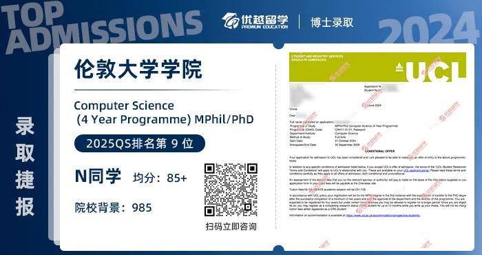 N學長是通過朋友推薦來到優越的,雙非背景,如愿拿下G5 中UCL的計算機科學PhD博士offer!