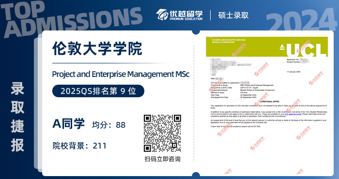 如今,即將前往UCL,意識到自己的選擇是多么的正確。優越留學不僅幫我打開了名校的大門,更讓我在申請過程中學會了堅持與努力。如果你也在為找工作而焦慮不已,不妨考慮一下出國留學這條路?;蛟S,這正是你提升自我、實現夢想的又一契機。優越留學,將是你留學路上的堅實后盾,助你一路前行,收獲滿滿。
