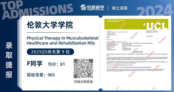 錄取offer:倫敦大學學院UCL——肌肉骨骼保健與物理治療