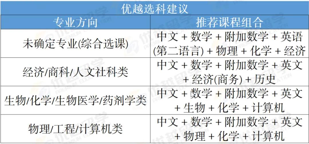 在選科上,優越君根據未來本科想要申請的專業方向,給到了一些課程組合以供參考。??