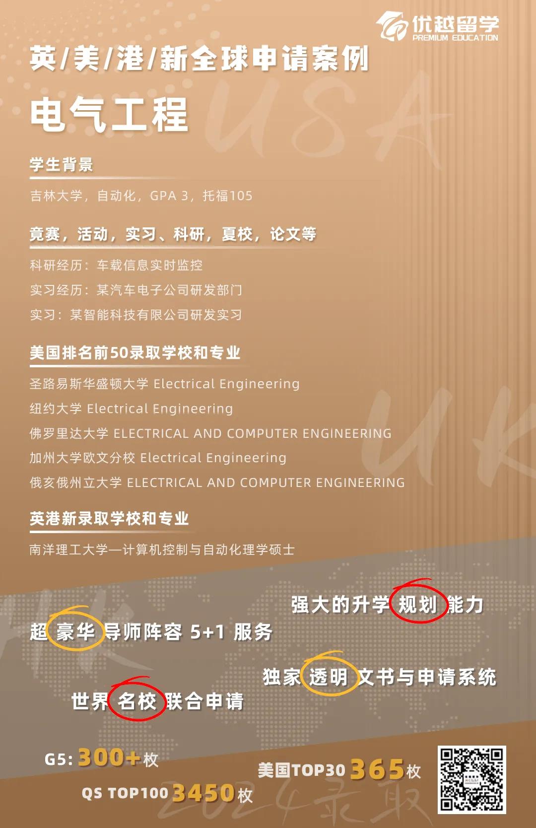 G學長是在大三上學期來的,當時他挺焦慮的,覺得成績不夠好,申請不到好的學校。而且對于留學國家的選擇比較迷茫,只是想要申請電氣工程相關專業。