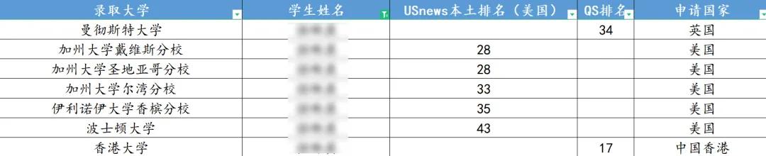 ? 特例3:全球申方向上,一位同學美國方向申請到UCSD、UCD、BU,且申請到香港大學,卻在英國方向只拿到了曼大的錄取。