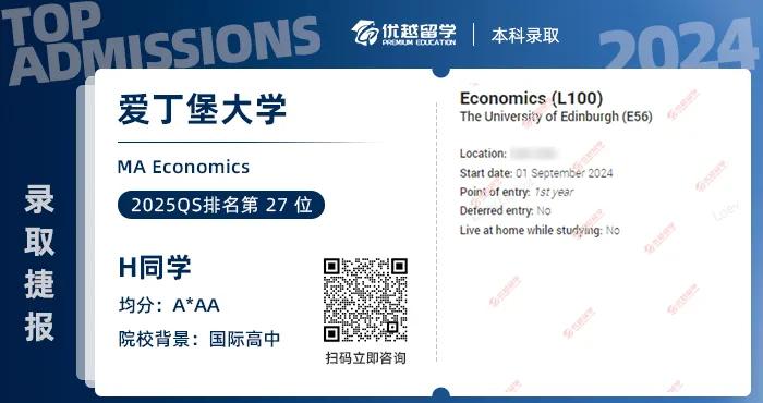 ?錄取院校及專業:愛丁堡大學-經濟學專業