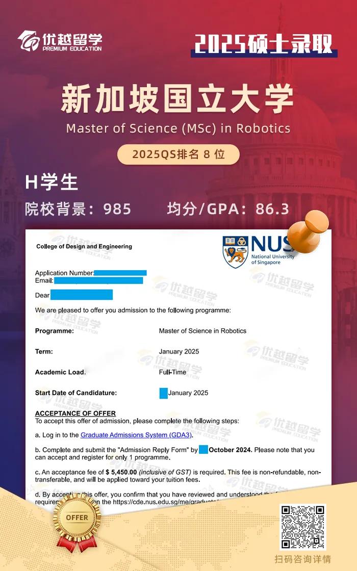 以上是【本期offer榜單:【碩士案例】25fall碩士留學申請光速上岸!新加坡二強offer已收入囊中 】相關的全部內容,查看更多【offer榜單】、【名校案例】相關資訊可前往【優越留學】首頁!世界名校申請,找優越留學!選校定校、申請規劃、文書寫作、背景提升、方案定制一套搞定!點擊【在線咨詢】,優越留學顧問24h在線為您一對一解答!