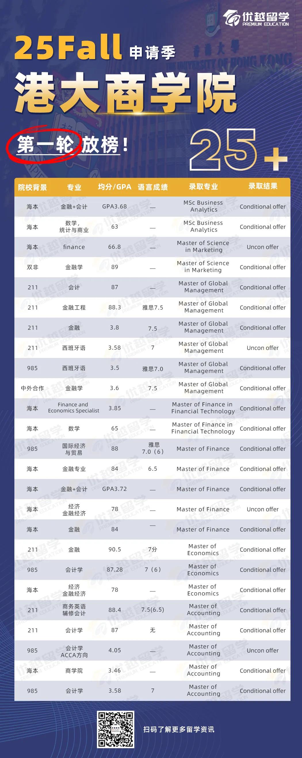 以上是【【香港留學】港中文會計提前4個月停止招錄!港大商院一輪offer已發!】相關的全部內容,查看更多【香港留學申請】相關資訊可前往【優越留學】首頁!詳細申請規劃及方案定制請預約優越留學顧問為你一對一解答!