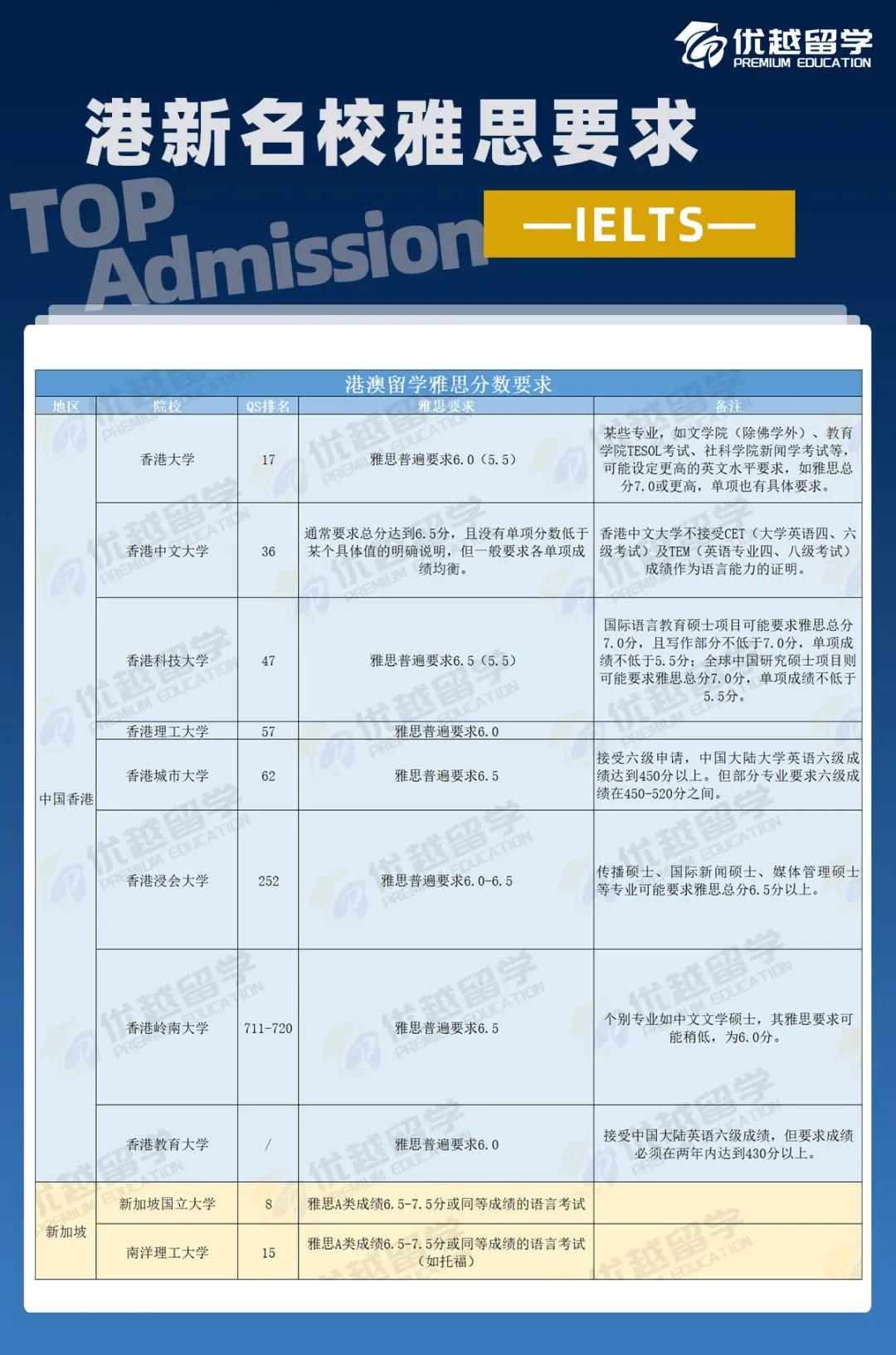 優越君匯總了英國QS前百名校、中國香港八大院校及新加坡的新國立和南洋理工大學的雅思要求,一起往下看看吧!
