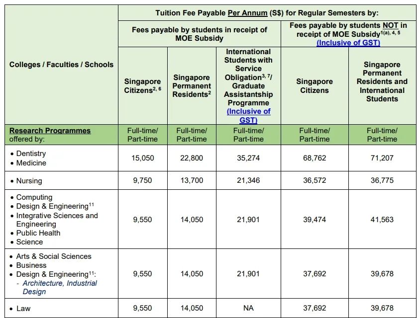 - 學費:新加坡國立大學的博士項目學費各不相同,具體費用可參考NUS官方提供的學費表格。