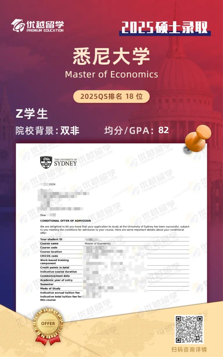 以上是【本期案例:【碩士案例】雙非均分82,拿下QS全球TOP20院校——悉尼大學offer!】相關的全部內容,查看更多【offer榜單】、【名校案例】相關資訊可前往【優越留學】首頁!世界名校申請,找優越留學!選校定校、申請規劃、文書寫作、背景提升、方案定制一套搞定!點擊【在線咨詢】,優越留學顧問24h在線為您一對一解答!