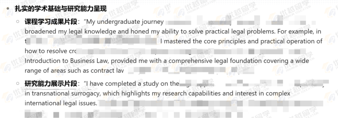 詳細闡述本科課程學習成果,表明獲得了扎實的專業知識,具備解決實際法律問題的能力,滿足 LSE 對申請者學術基礎的要求。而對一些爭議話題法律適用的研究,展示了深入研究復雜國際法律問題的能力和興趣,這與 LSE 鼓勵學生進行學術探索、追求深度研究的理念相契合,體現出申請者有潛力在 LSE 的學術環境中取得優異成績。