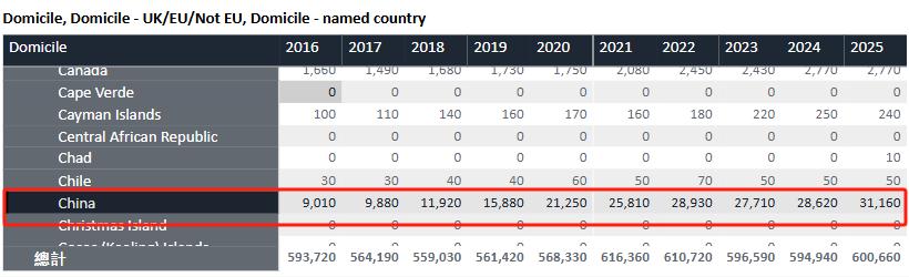 在眾多國家和地區中,中國申請人的增長最為顯著。2025fall 中國通過 UCAS 的申請人數達到 31,160 人,2024 年為 28,620 人,相比 2024 年增加了 2540 人,漲幅約 8.15%。除中國外,愛爾蘭(+750)和美國(+700)的申請人也有較大幅度的增加。