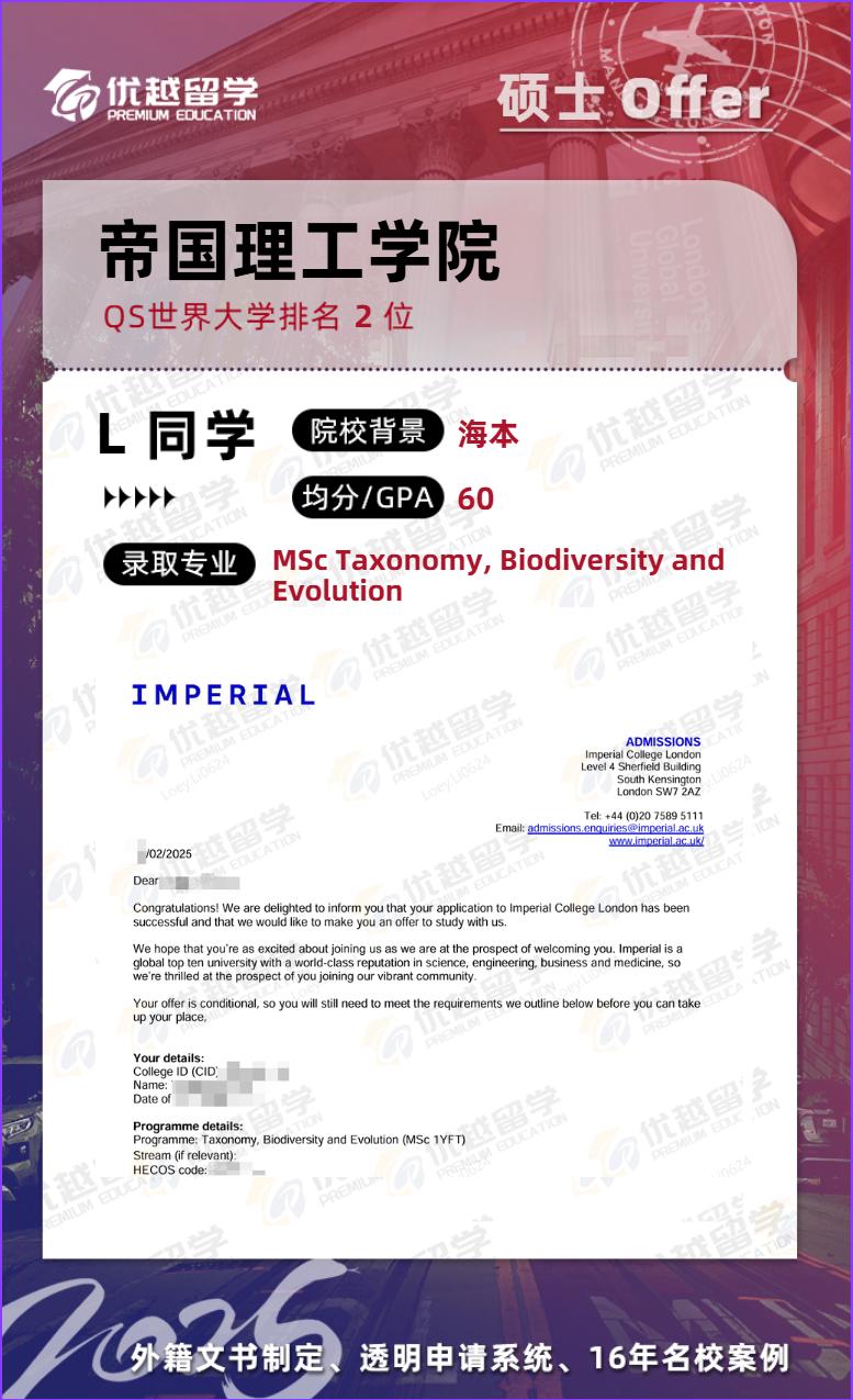 以上是【本期案例:【碩士案例】從QS100外晉升世界TOP2,斬獲IC帝國理工學院offer! 】相關的全部內容,查看更多【offer榜單】、【名校案例】相關資訊可前往【優越留學】首頁!世界名校申請,找優越留學!選校定校、申請規劃、文書寫作、背景提升、方案定制一套搞定!點擊【在線咨詢】,優越留學顧問24h在線為您一對一解答!