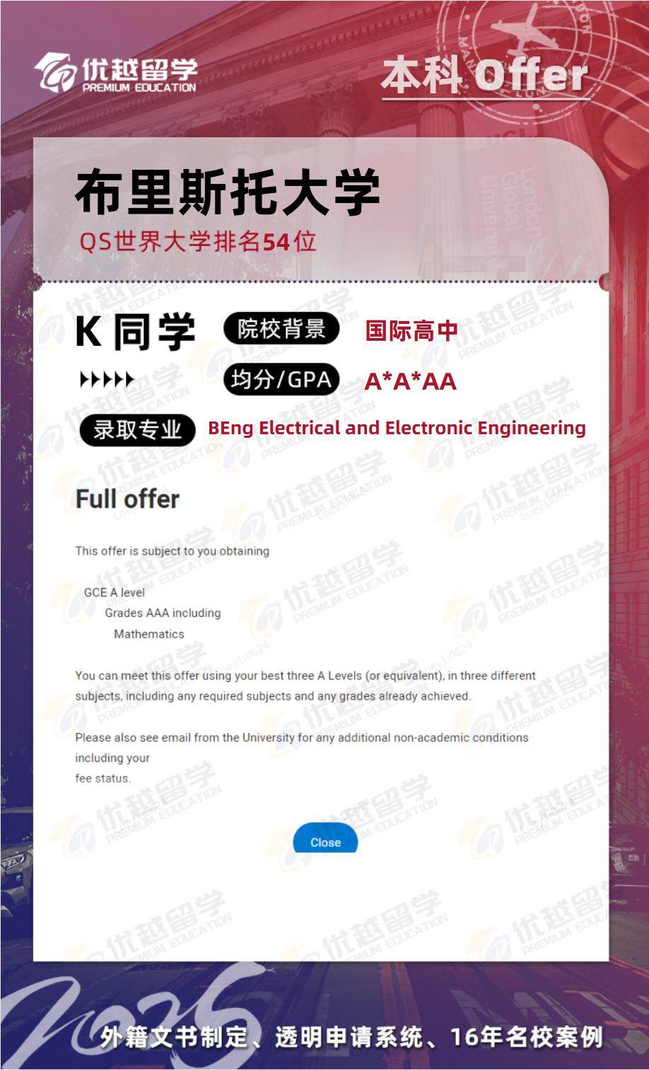 以上是【【本科案例】A-level步步為營,拿下布里斯托大學王牌專業EEE!】相關的全部內容,查看更多【 本科留學申請】相關資訊可前往【優越留學】首頁!詳細申請規劃及方案定制請預約優越留學顧問為你一對一解答!