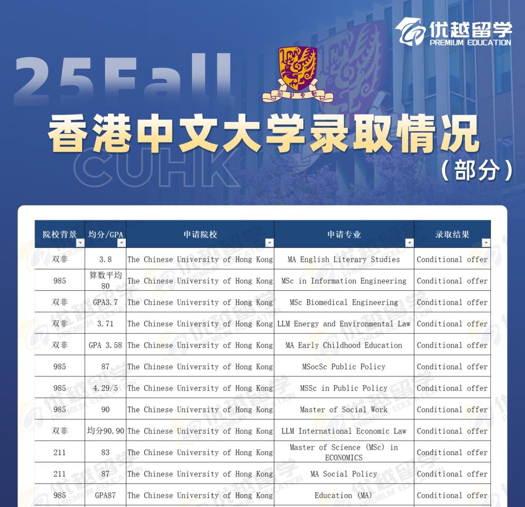 港中文受歡迎,除了排名提升,還有一個重要原因就是對雙非院校的學生相對友好。不像港三的其他學校對雙非學生要求那么苛刻,港中文就算是熱門商科專業,也會錄取不少雙非學生。前提是實習和GPA過關。