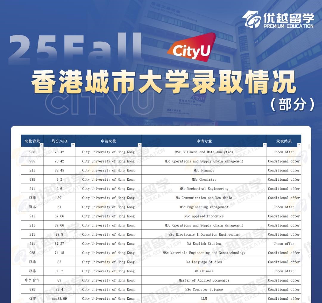 今年港城市的錄取難度也不高,很多專業學生均分不高也能拿到 Offer。985、211 院校的學生很受青睞,部分專業均分 75 左右就有機會,雙非院校的學生不少均分 82 - 83 也能被錄取。