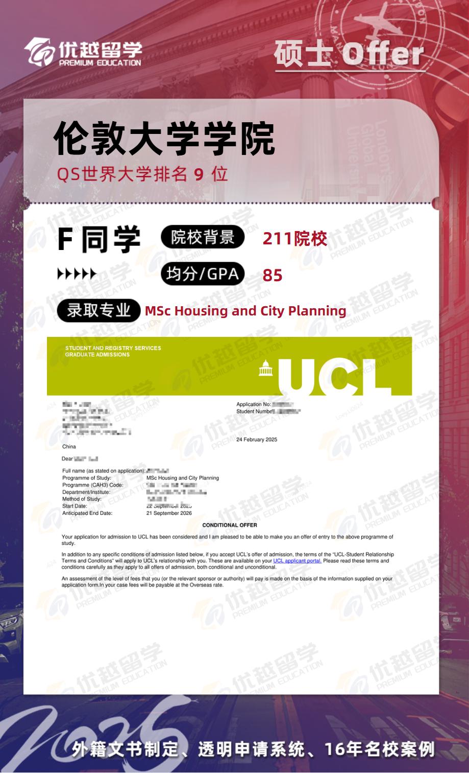 以上是【【碩士案例】 211園林設計專業,精準匹配UCL倫敦大學學院!】相關的全部內容,查看更多【offer榜單】、【名校案例】相關資訊可前往【優越留學】首頁!世界名校申請,找優越留學!選校定校、申請規劃、文書寫作、背景提升、方案定制一套搞定!點擊【在線咨詢】,優越留學顧問24h在線為您一對一解答!