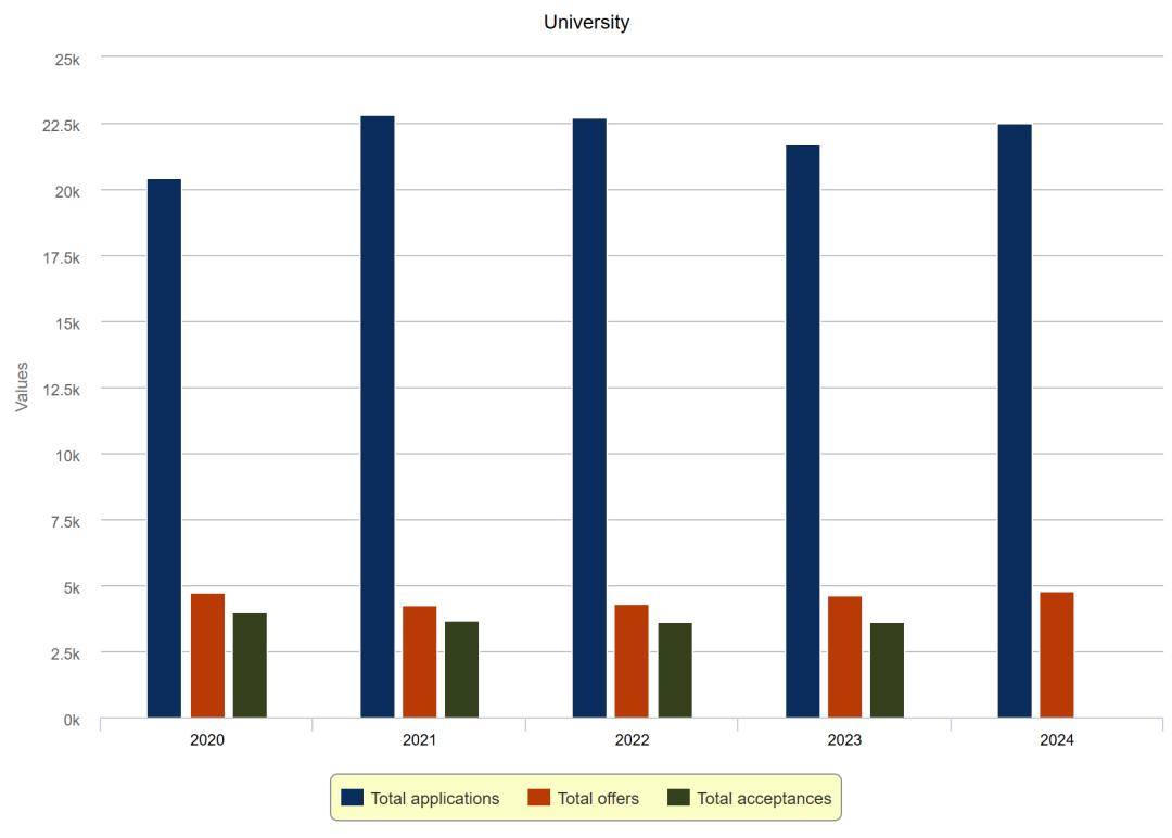 近年來,中國學生申請英國本科留學的人數持續增長,2024 申請季共遞交了 33,425 份申請,創下近十年新高 。與此同時,整體 Offer 率也有所提升,達到 62.8%,相比上一周期增長了 4.7%。