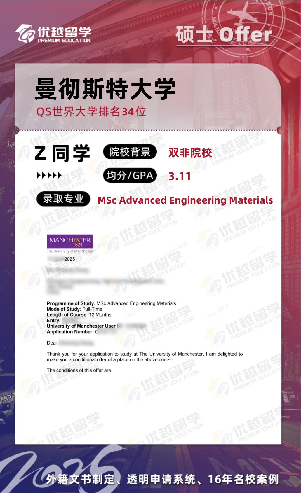 在申請曼徹斯特大學時,優越留學能為學生提供全方位的服務。從前期的選校定位,結合學生的學術成績、興趣愛好和職業規劃,確定最適合的專業;到中期的申請材料準備,指導學生準備完善的申請文書和推薦信;再到后期的申請遞交和面試輔導,優越留學的專業團隊都會全程跟進,助力學生順利拿到曼大的錄取通知書。
