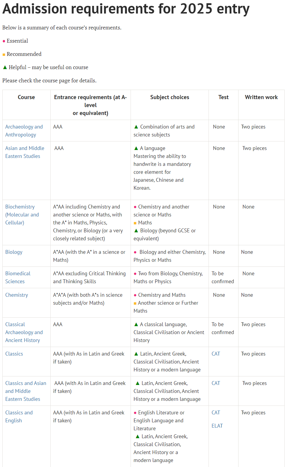 ♦ Classics and English和Classics and Modern Languages:必選科目有所調整。英語文學成為必選,而拉丁語、古希臘語等從必選紅色降級為建議選。